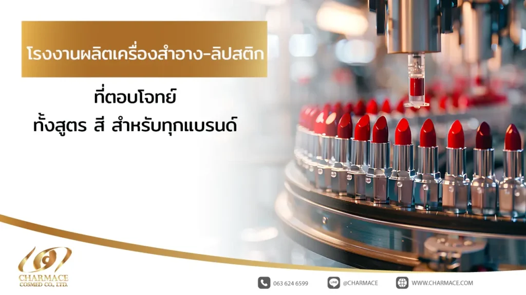 การเลือกโรงงานที่เหมาะสมจะช่วยให้กระบวนการผลิตราบรื่นมากขึ้น และทำให้เจ้าของแบรนด์มั่นใจได้ว่าสินค้าที่ออกมามีความน่าเชื่อถือทั้งด้านความปลอดภัยและมาตรฐานคุณภาพ ดังนั้น Charmace Cosmed จึงตั้งใจรวบรวมข้อมูลสำคัญเกี่ยวกับสิ่งที่ควรพิจารณาเมื่อมองหาโรงงานผลิตลิปสติก ตั้งแต่ขั้นตอนการพัฒนาสูตรไปจนถึงบริการที่สนับสนุนการสร้างแบรนด์ในระยะยาว เพื่อให้เจ้าของแบรนด์สามารถตัดสินใจได้อย่างมีข้อมูลและเริ่มต้นธุรกิจได้อย่างถูกทิศทางมากขึ้นค่ะ