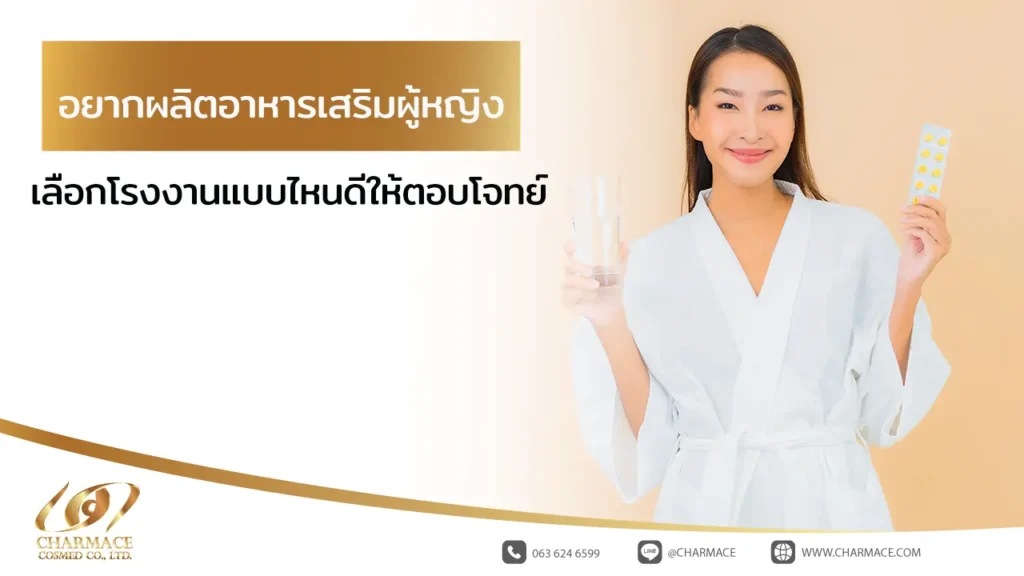 ผู้ประกอบการหลายคนที่กำลังค้นหาข้อมูลเกี่ยวกับการผลิตอาหารเสริมผู้หญิง มักมีคำถามสำคัญว่า ควรเลือกโรงงานแบบไหนจึงจะช่วยให้แบรนด์เริ่มต้นได้ง่ายและมีโอกาสประสบความสำเร็จมากขึ้น บทความนี้ Charmace Cosmed จึงอยากชวนทุกคนมาทำความเข้าใจตั้งแต่ภาพรวมของตลาดอาหารเสริมผู้หญิง การเตรียมตัวก่อนเริ่มผลิตสินค้า ไปจนถึงแนวทางการเลือกโรงงานรับผลิตที่เหมาะสม เพื่อให้ผู้ประกอบการสามารถตัดสินใจได้อย่างมั่นใจมากขึ้นค่ะ